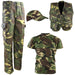 Included in this military-inspired kit is a round neck 100% cotton t-shirt, polycotton trousers with zip closure and 6 pockets, zip front tactical vest with 11 pockets and a baseball cap to complete the army look.
